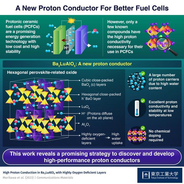 In a paper just published in Communication Materials, a team of researchers from Tokyo Institute of Technology, including Prof Masatomo Yashima reported the remarkable properties of a new hexagonal perovskite-related oxide, Ba2LuAlO5, that has provided interesting insights into proton conduction.